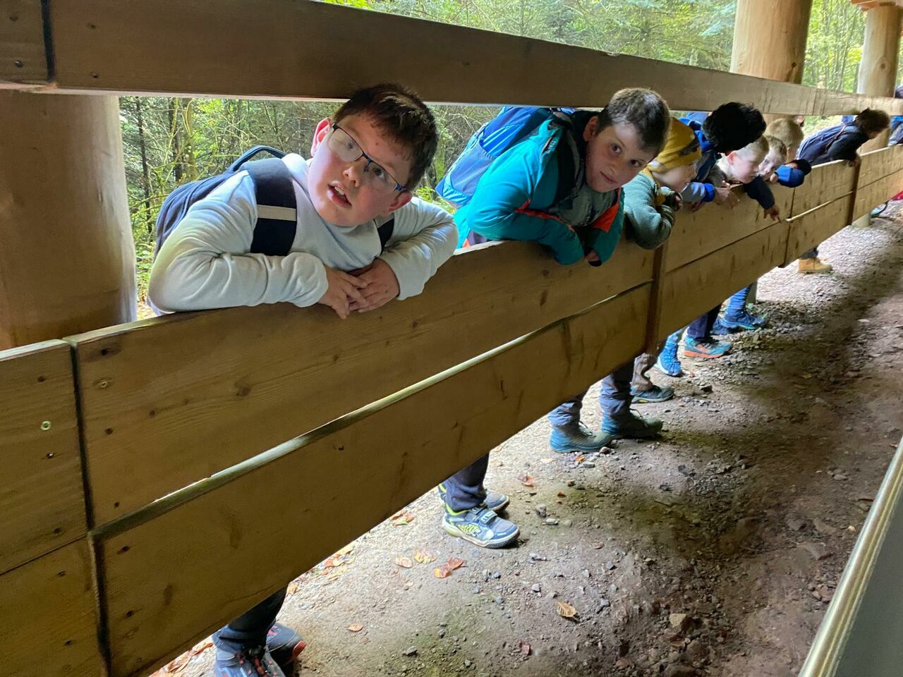 Am Montag, den 29. September 2025, machten sich die zweiten Klassen auf den Weg zum Baumkronenweg in Waldkirch. Schon der Aufstieg dorthin war ein kleines Abenteuer – steil ging es bergauf. Dabei lag zunächst noch dichter Nebel über dem Wald, was die Stimmung fast ein bisschen mystisch wirken ließ.