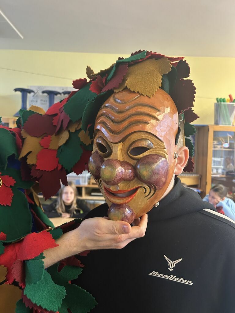 Lotta (Klasse 2a) und ihre Mutter haben die Narrenzunft „Triibl“ vorgestellt. Sie wurde 1969 gegründet. Die Schülerinnen und Schüler hatten viele interessante Fragen gestellt, die von den beiden Narren beantwortet wurden. Gemeinsam haben wir dann noch das traditionelle Fasnetslied „Àmol im Jahr isch Fasnet“ gesungen.