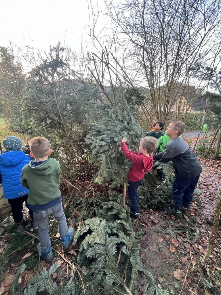 Manchmal entstehen die schönsten Dinge ganz von selbst: Nachdem die Advents- Dekoration bereits fertig war, lag auf unserem Schulhof noch Tannenreisig herum. Unsere Zweitklässler ließen sich davon inspirieren und begannen eigenständig, daraus eine Hütte zu bauen.
