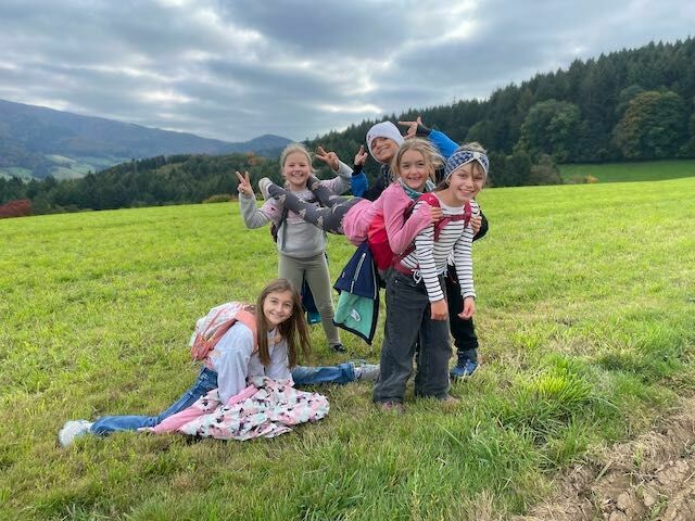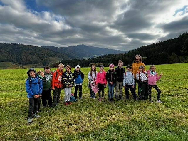 Bei sonnigen Herbstwetter machten wir uns Anfang Oktober auf den Weg zum Silbergrüble. Hinter den Mattenhof ging es steil bergauf, so dass wir froh waren, als wir unsere erste Pause machten. Wir hatten genug Zeit, um zusammen zu spielen, die Natur zu erkunden und unser Vesper zu essen. Unsere zweite Pause machten wir auf dem Spielplatz, bevor es wieder zurück zur Schule ging.