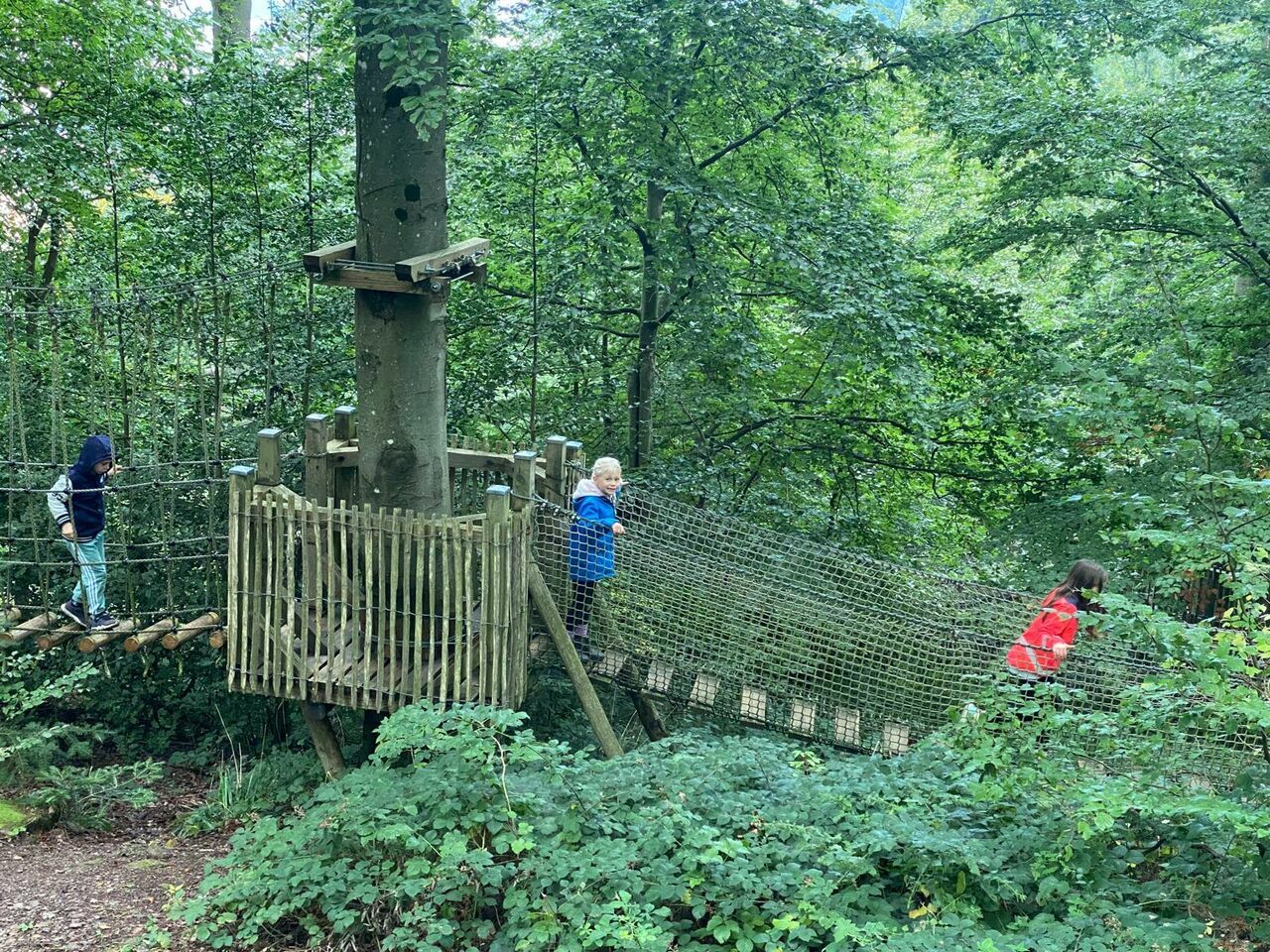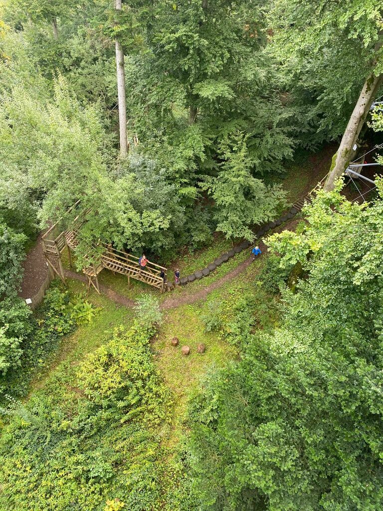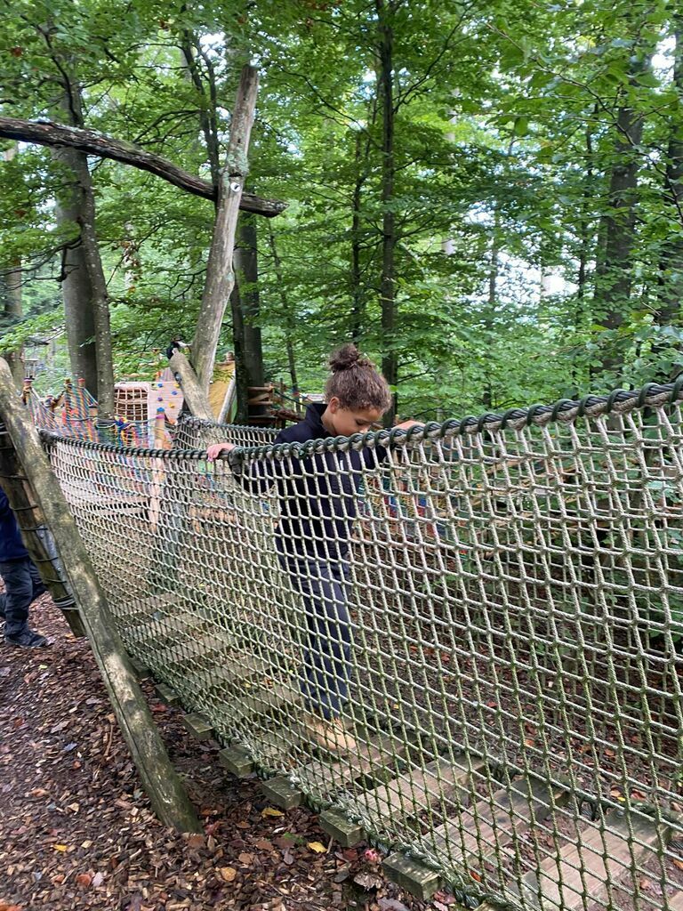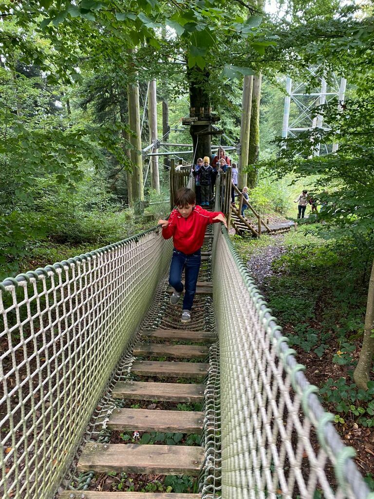 Oben angekommen, hatten sich alle eine Pause verdient. Gemeinsam packten Kinder und Lehrer ihr Vesper aus und stärkten sich erst einmal, bevor es weiterging. Danach wurden die Hängebrücken erkundet, der tolle Spielplatz ausprobiert und natürlich der Baumkronenweg selbst begangen. Stück für Stück kam dann auch die Sonne heraus.