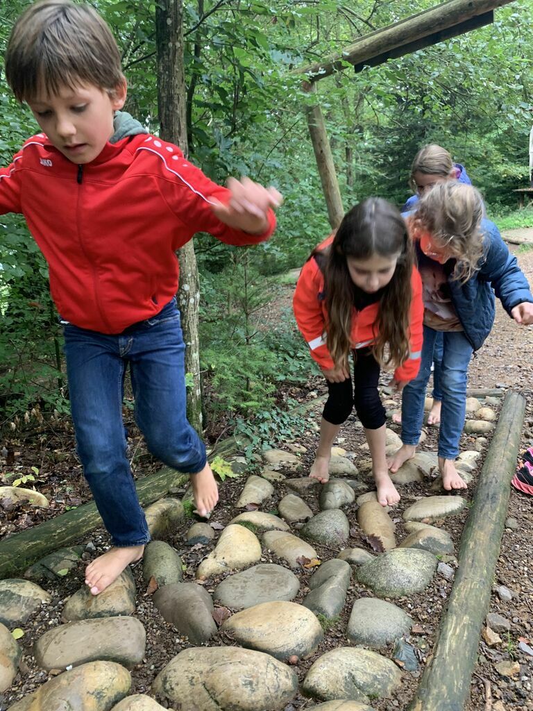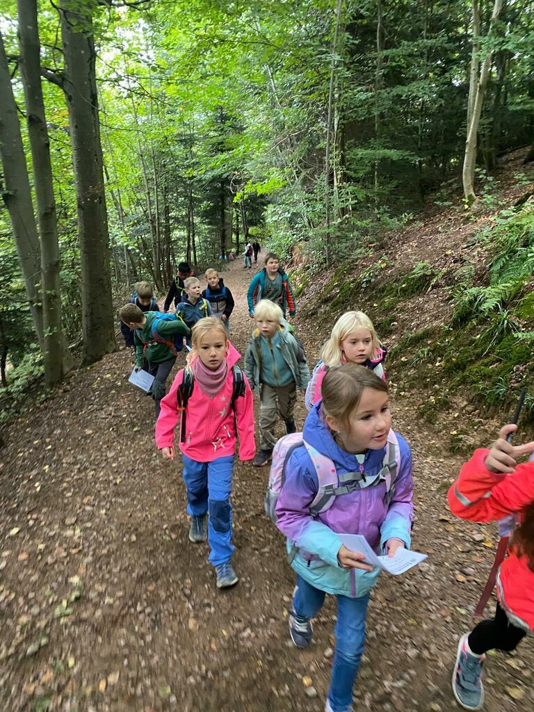 Der Weg nach oben führte über einen spannenden Sinnesweg, auf dem die Kinder Rätsel lösen und kleine Aufgaben bewältigen konnten. Das machte den Anstieg gleich viel abwechslungsreicher und sorgte für gute Laune unterwegs.