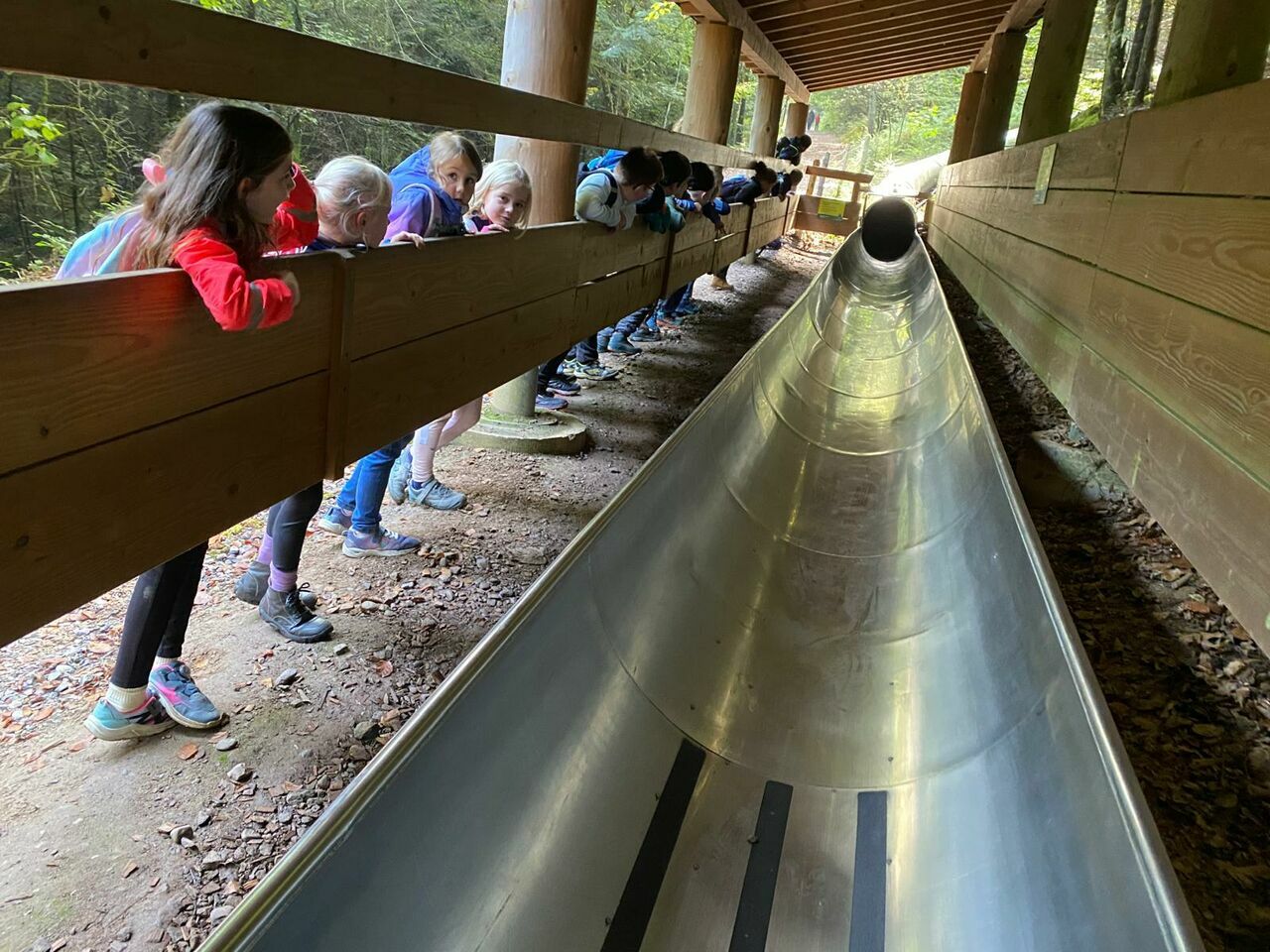 Zum Schluss gab es noch ein besonderes Highlight: Einige mutige Kinder trauten sich, die riesige Röhrenrutsche hinunterzusausen – sie gilt sogar als die größte ihrer Art in ganz Europa!