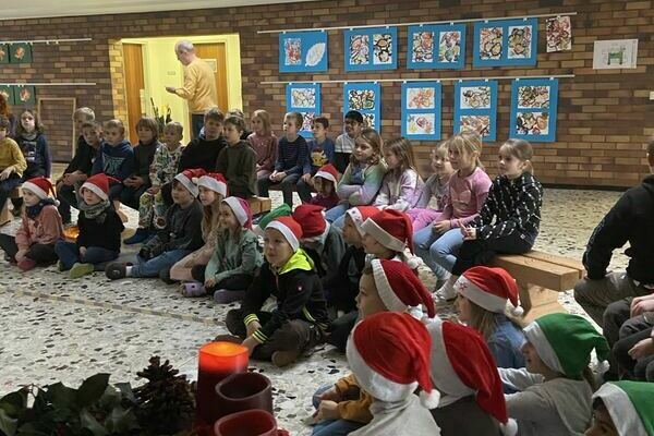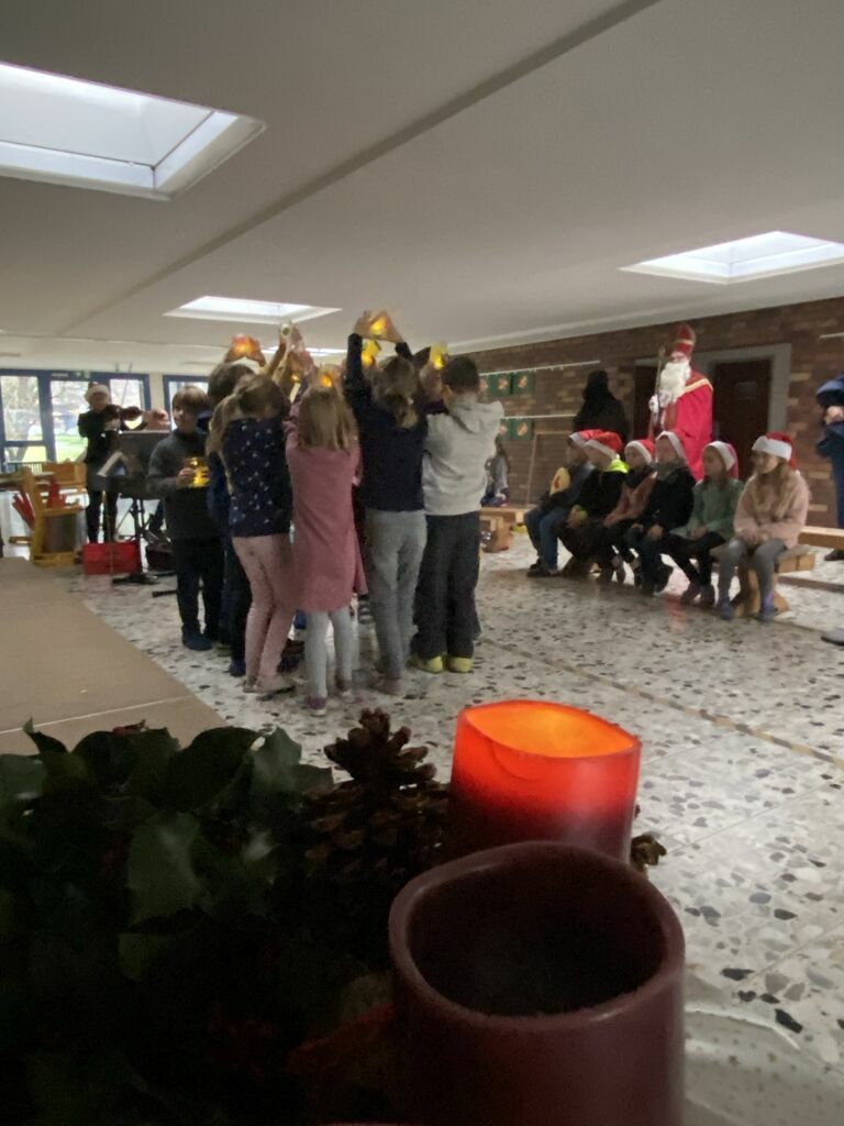 Zunächst begrüßte der Nikolaus und Knecht Ruprecht die Schüler und Schülerinnen der ersten und zweiten Klassen. Die Kinder schenkten den beiden mehrere schöne Lieder, ein tolles Gedicht und einen Lichtertanz. Dann gab es natürlich Säcke mit Geschenken für alle Klassen. Nikolas war sehr zufrieden. Knecht Ruprecht musste nur ein wenig mit seiner Rute eingreifen.