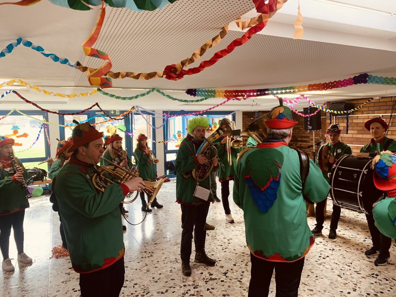 Schmutziger Dunschdig 2025! Nachdem schon den ganzen Morgen Fasnet gefeiert wird, erst in den Klassenzimmern, dann nach einer Polonaise durch's Schulhaus in der Aula mit diversen Aufführungen der verschiedenen Klassen, stürmen um 11.11 Uhr die Glottertäler Zünfte die Schule. Die Trachtenkapelle musiziert, die Narren tanzen, alle feiern! Ein rundum schönes Fest mit glücklichen Kindern, fröhlichen Lehrern, hilfsbereiten Elternvertreterinnen und närrischen Narren!
