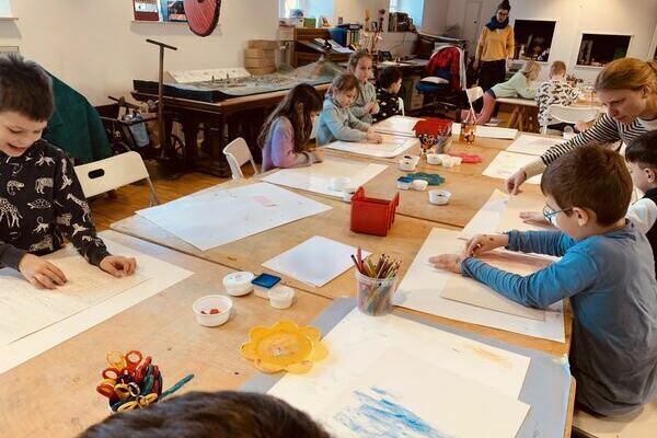 Nach der Führung durften die Kinder im Museumsstudio selbst gestalten: Mit der Frottage Technik erschafften sie zuerst einen bunten Hintergrund. Unterschiedliche Materialien standen dafür zur Verfügung. Anschließend wurden Tiere gestaltet und auf den Hintergrund geklebt. Bunt und einzigartig gestaltete jedes Kind sein Werk. Im Anschluss wurde bei schönstem Winterwetter gevespert und den Heimweg angetreten.