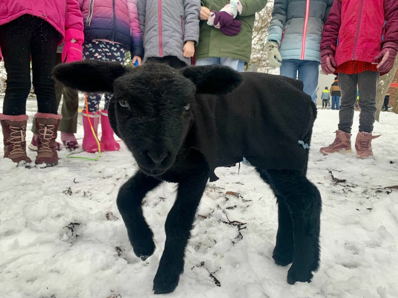 Unsere Schulbegleitung der Klasse 1, Frau Birkle, hat momentan ein Lämmchen, das mit der Flasche aufgezogen werden muss. Und da sie heute keinen Lämmchen-Sitter hat, muss Silvester, der in der Silvesternacht geboren wurde, eben mit zur Schule. Ein absolutes Highlight für unsere Kinder! Er ist genau eine Woche alt und alles andere als scheu.