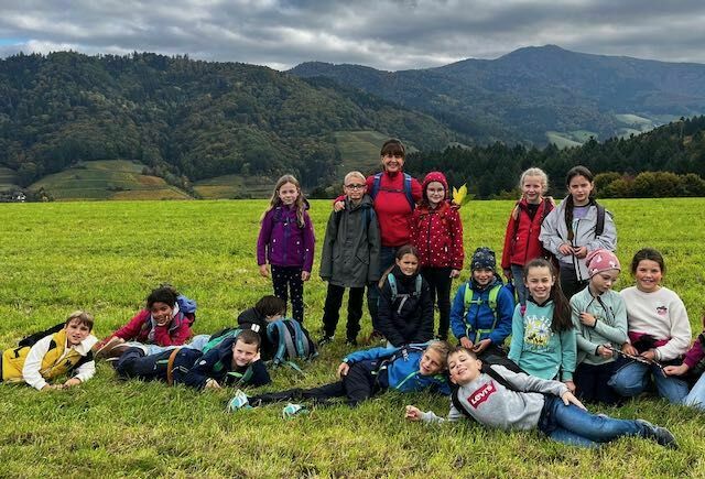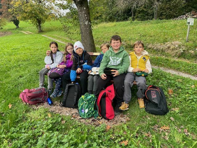 Bei sonnigen Herbstwetter machten wir uns Anfang Oktober auf den Weg zum Silbergrüble. Hinter den Mattenhof ging es steil bergauf, so dass wir froh waren, als wir unsere erste Pause machten. Wir hatten genug Zeit, um zusammen zu spielen, die Natur zu erkunden und unser Vesper zu essen. Unsere zweite Pause machten wir auf dem Spielplatz, bevor es wieder zurück zur Schule ging.